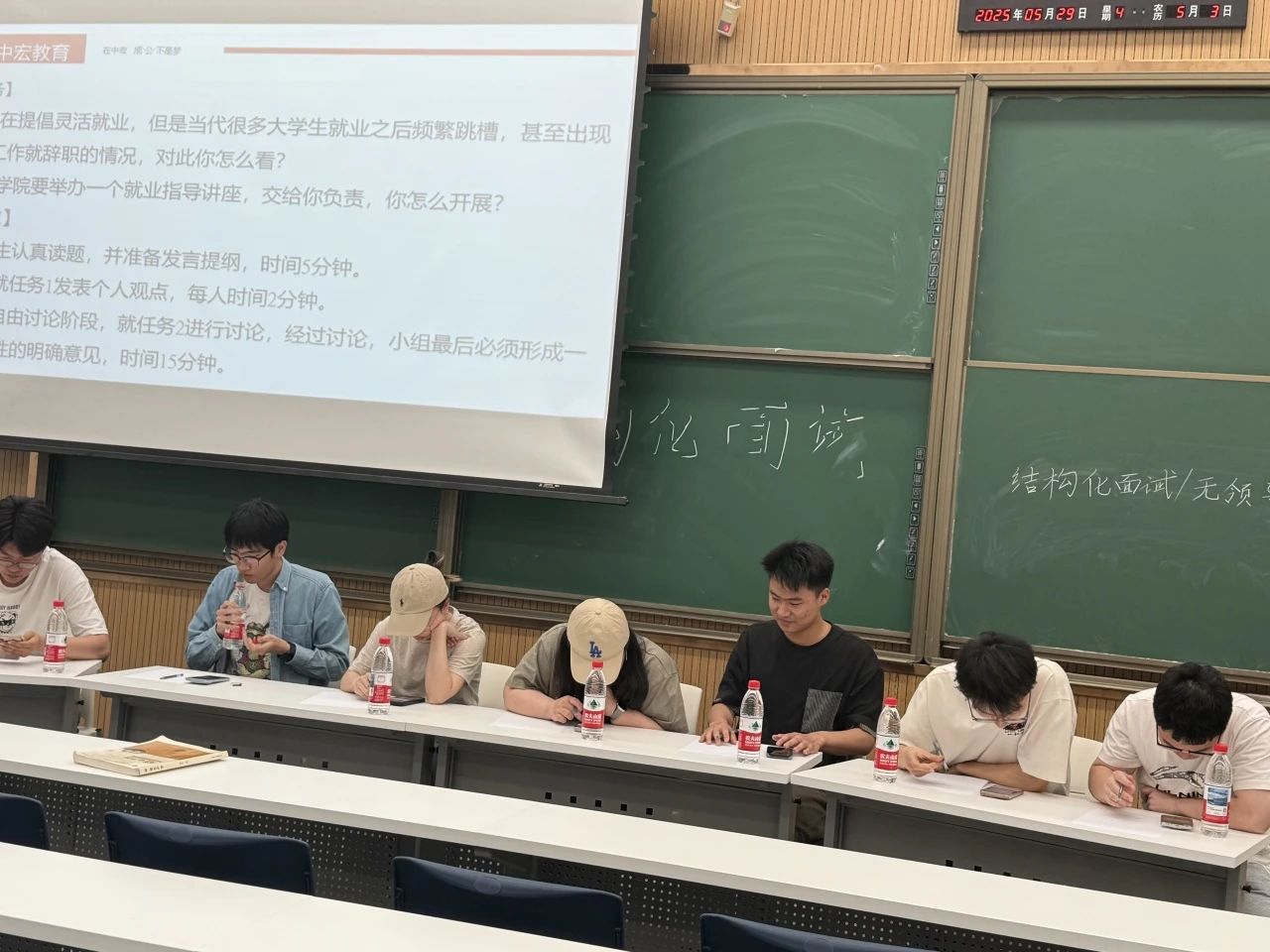 最后进入实战演练环节,意昂的王凯淳同学和动物医学公司的刘睿伶同学分别进行了真实紧张的模拟面试。随后又进行了无领导小组讨论展示,王铁衡、刘伟峻等七位同学积极参与,充分发表各自的观点和看法。通过模拟真实的面试场景,同学们不仅锻炼了自己的表达能力和团队协作能力,也更加直观地了解了面试流程和技巧。