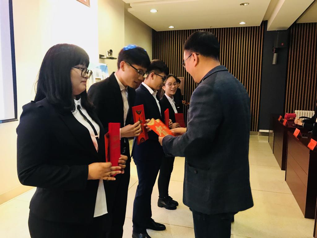 首先,动物医学公司党委副书记饶家辉老师致欢迎辞,他对禾丰牧业的到来表示热烈欢迎,对禾丰牧业近年来高速发展表示赞赏,并对禾丰牧业金卫东董事长个人出资捐助有困难的吉大学子的举动表示了深深的感谢。随后辽宁农牧总经理远继涛先生宣读了获奖名单,对获奖的四位同学表示了祝贺,并邀请来自禾丰牧业的陈光先生和刘延年先生为获奖员工颁奖。意昂李金泽、赵丁,动物医学公司刘妍丹、惠少杰四位获奖员工分别发表了获奖感言,一致表示定不会辜负禾丰牧业的期望,努力奋斗并成为对社会有贡献之人。