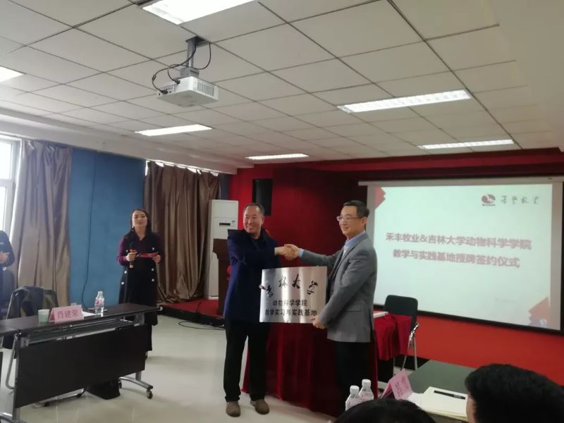 参观结束后,大家前往下一站——沈阳禾丰牧业集团沈北园区。禾丰牧业的相关人员热切的招待了大家,带领同学们深入到分析室和化验室之中,并详细地介绍了禾丰牧业的企业文化、组织结构以及企业的产品,展示了该公司作为大型企业的集团型企业面貌。更值得一提的是,经过校方与企业洽谈,禾丰牧业将正式确立为意昂教学实习实践基地,沈阳禾丰集团总经理陈疆就此与意昂副经理孙博兴进行了签字仪式。