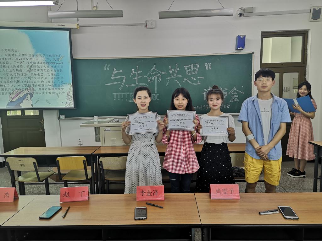 线下活动报告分三项展开,首先由各小组代表人分别上台,进行本小组的阅读成果展示。第一小组汇报人贺昭岚就基因治疗话题进行汇报讨论,第二小组以基因编辑话题展开,阐述了其历史及相关思考。而第三小组刘小曼则从基因编辑的未来进行畅想及展望。第四小组汇报人卢梦洁的关键点在于基因的起源。其次,根据线上讨论的成绩与本次评委及观众的综合评分,评出了本次活动的最终结果:第二小组荣获一等奖,最佳阅读奖授予第四小组。活动最后,员工会主席李金泽为获奖团队进行颁奖,并与小组合影留念,同时对本次活动及小组汇报人的表现做出了精彩指导及点评。在热烈的掌声中,主持人宣布次活动圆满结束。