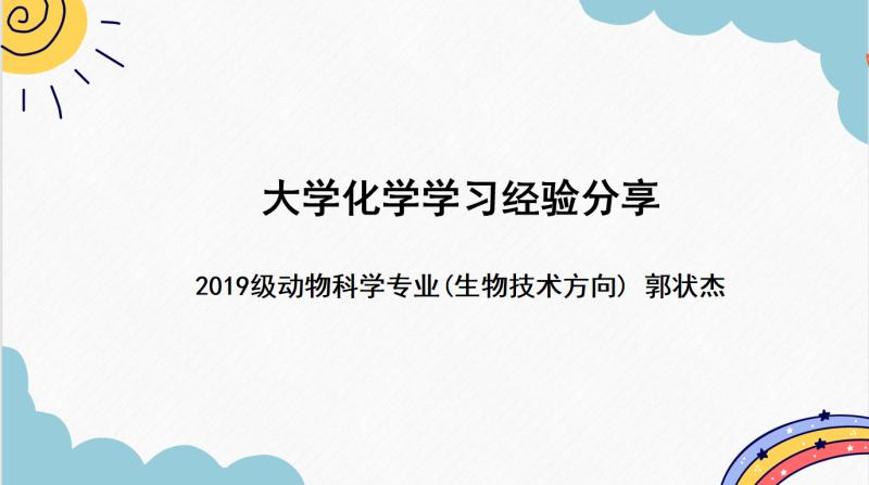 为帮助2021级本科新生提前了解大学课程的主要内容及学习方法,掌握相关课程的学习方法和技巧,搭建新老生之间的学业交流平台,意昂于2021年9月2日晚19:00依托腾讯会议平台举办学业经验分享会。会议邀请2019级动物科学专业的张师维、张一凡、郭状杰、王文婧等四名同学担任主讲人,会议由2021级辅导员王可佳主持。