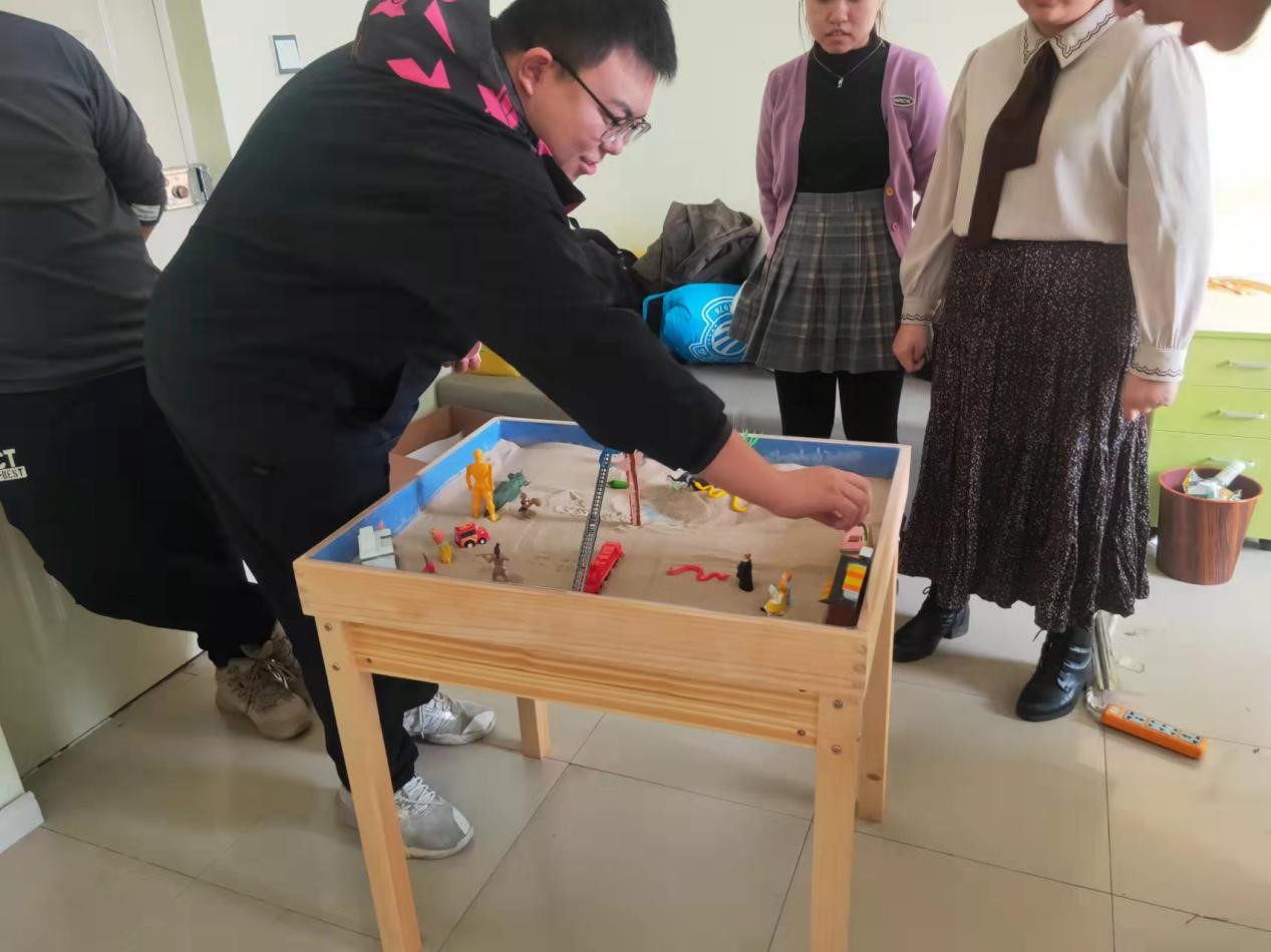 在开心使者的专业指导和同学们的积极配合下,本次活动进展顺利,取得了较好效果。沙盘游戏中每一个细小元素都有着它独特的意义和价值,当同学们一起进行时,就融合成了一个巨大的能量场,大家彼此感受也互相影响。同学们都在沙盘中构建着心中的世界并分享心得体会,也感受到了沙盘游戏的乐趣与魅力。本次活动促进了同学们积极主动地与他人进行社交,更好地处理人际关系,培养自信向上的健康心理态度。