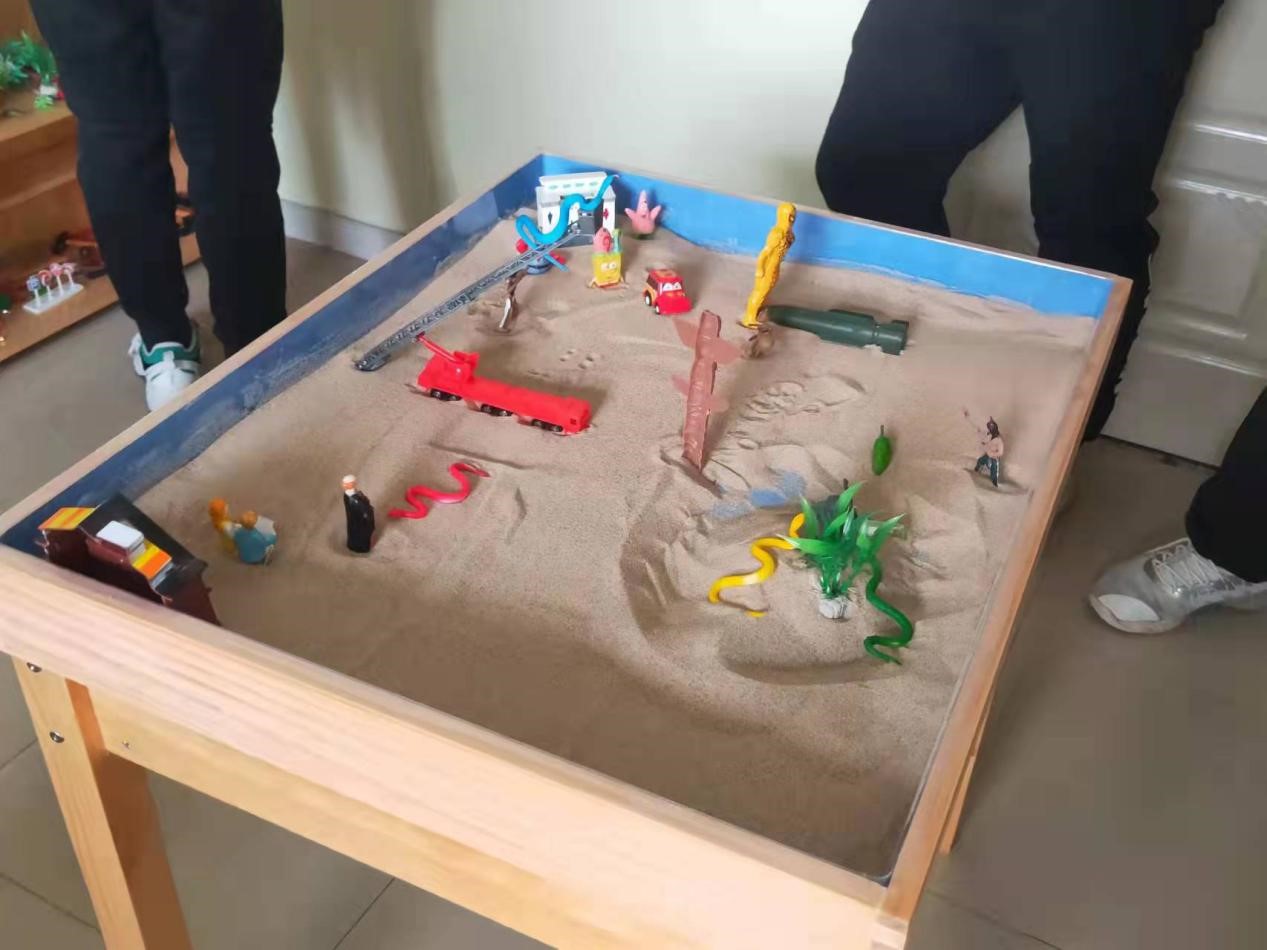 沙盘游戏,亦称箱庭疗法 ,是在治疗师的陪伴下,让来访者从摆放各种微缩模具玩具的架子上,自由挑选小模具,摆放在盛有细沙的特制的沙盘里,创造出一些场景,然后由治疗师运用荣格的“心象”理论去分析来访者的作品。沙盘游戏是通过个体在团体内的交互作用,帮助个体更好地认识自我、探讨自我,同时学会观察并接纳他人,在人际关系互动、促进人格完善和人的身心健康发展等方面具有重要作用。