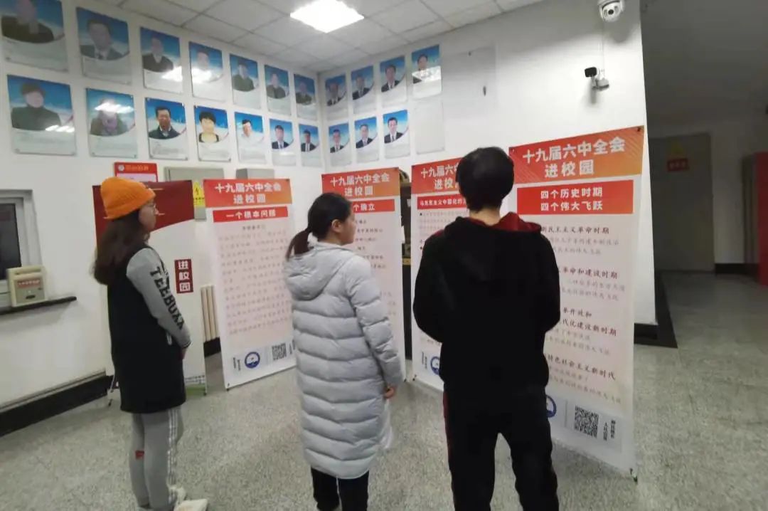 最后,王可佳带领全体团干部集体学习党的十九届六中全会精神,逐一参观宣传展板,认真学习全会内容,全面贯彻全会精神。