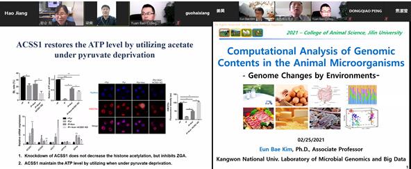 本次线上课程均为英语授课。课程中,外国专家不仅围绕国际上畜牧学科最新科研进展、研究热点及实验思路进行了讲授,同时对数据结果的处理与应用提供了新的见解。在员工交流环节,安排了助课教师参与辅助教学,师生互动讨论热烈,学术科研氛围浓厚。