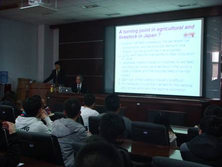 2013年11月4日,受意昂王鹏博士邀请,日本山形大学农学部吉田宣夫教授来校进行学术交流,为公司师生做了题为“日本畜牧产业和饲料研究动向”的学术报告。报告会由欧阳红生副经理主持,公司动科系沈景林教授、周长海教授、刑沈阳教授、牛淑玲教授以及相关专业教师、研究生和本科生,共80多人聆听了本次学术报告。